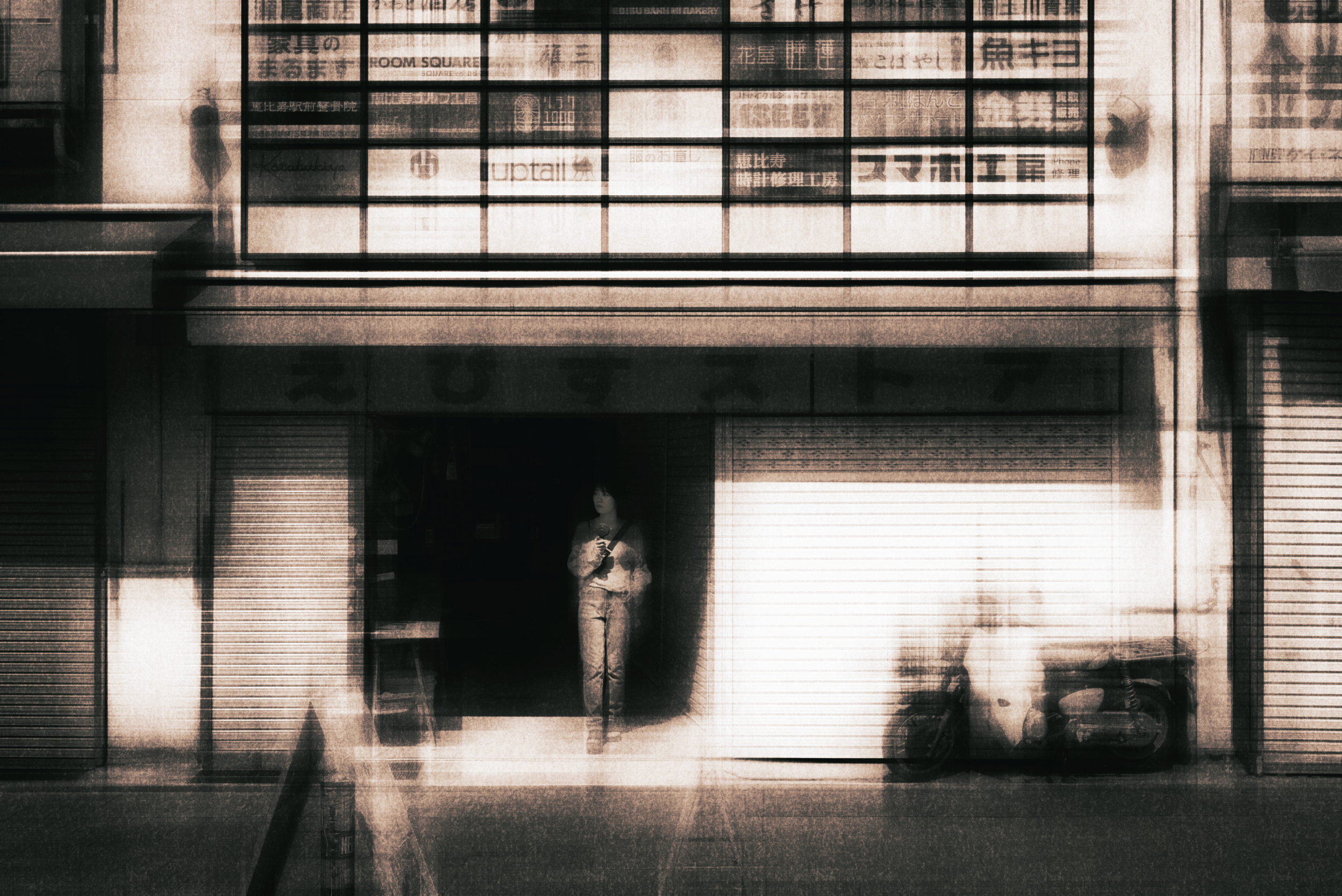 For example, the theme of a piece I exhibited at the very first 1X exhibition in Japan was the ever-changing city and its inhabitants. I spent time finding a location where I could capture a person inside a new building, reflections of old townscapes in glass and a construction site in one composition.