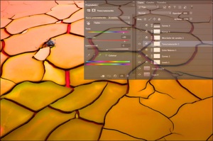 9) I later changed my mind regarding the overall color. I was looking for something more representative of the vibrant, warmer hues that I observed at Río Tinto. So I created a Hue and Saturation layer and drastically altered the colors (Menu > Layer > New Adjustment Layer > Hue/Saturation).